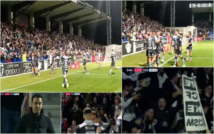 Em um emocionante confronto, uma equipa da 3ª divisão surpreende ao colocar-se em vantagem diante do barcelona, levando o estádio ao êxtase.