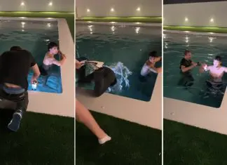 Num momento de descontração à beira da piscina, o futebolista português João Félix diverte-se ao presenciar um amigo a ser empurrado para a água. No...